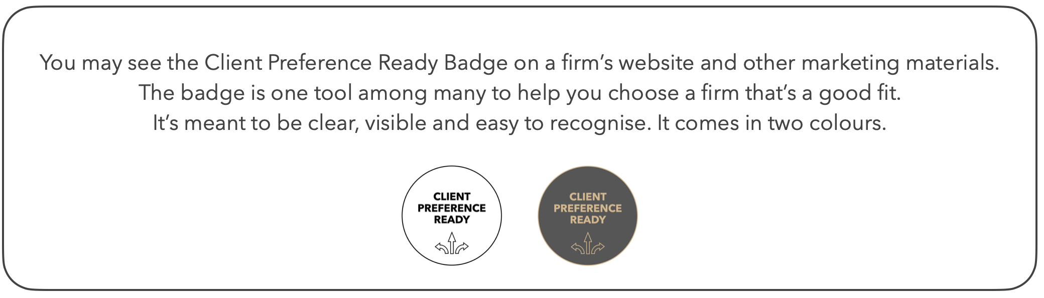 The Client Preference Ready Badge is an independent, voluntary standard run by In ACCORD.
